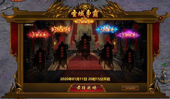 开服3天、6天及之后的每周3、6的20:15开启圣域争霸战,所有的帮会可以前往圣域争夺归属权